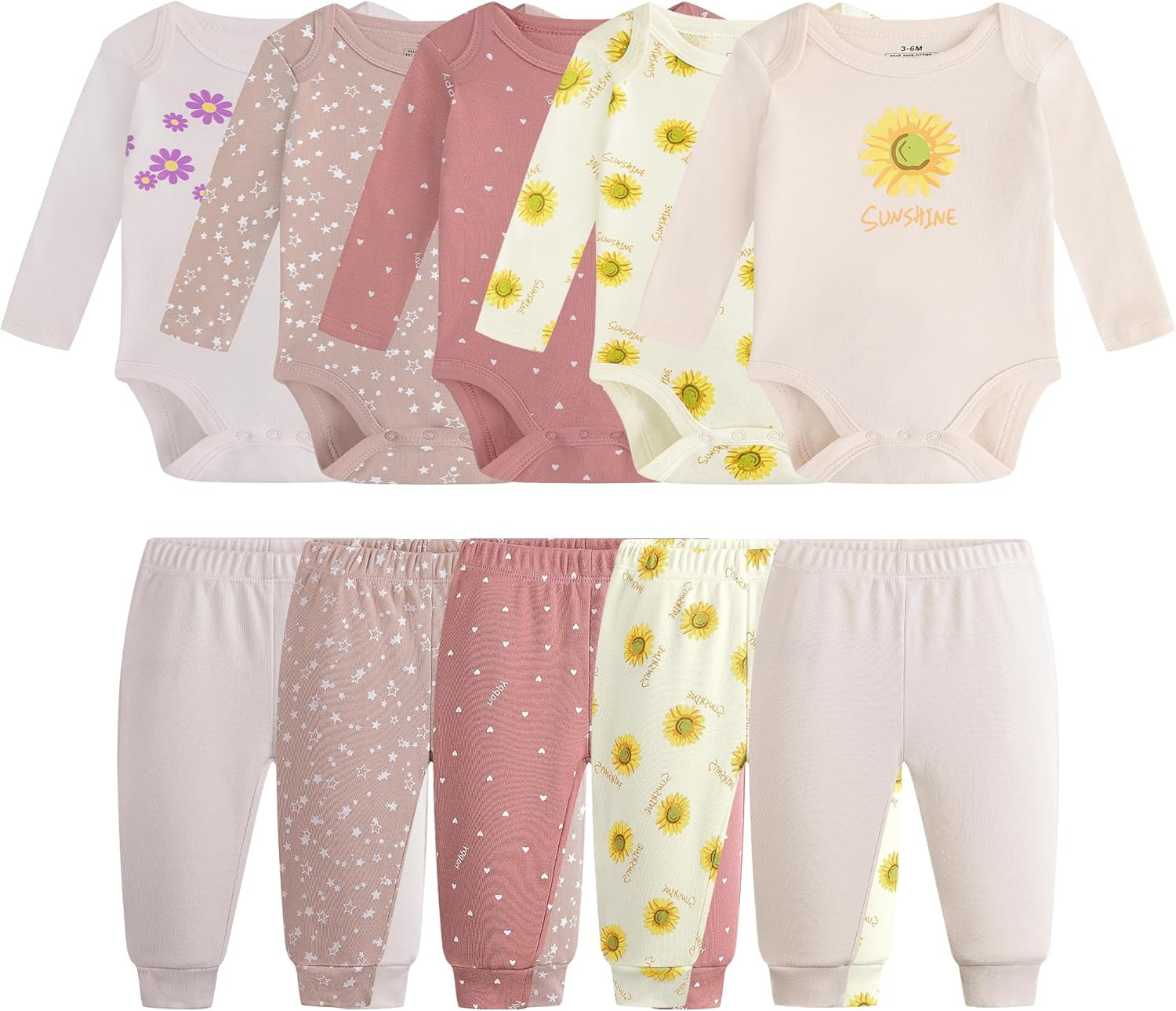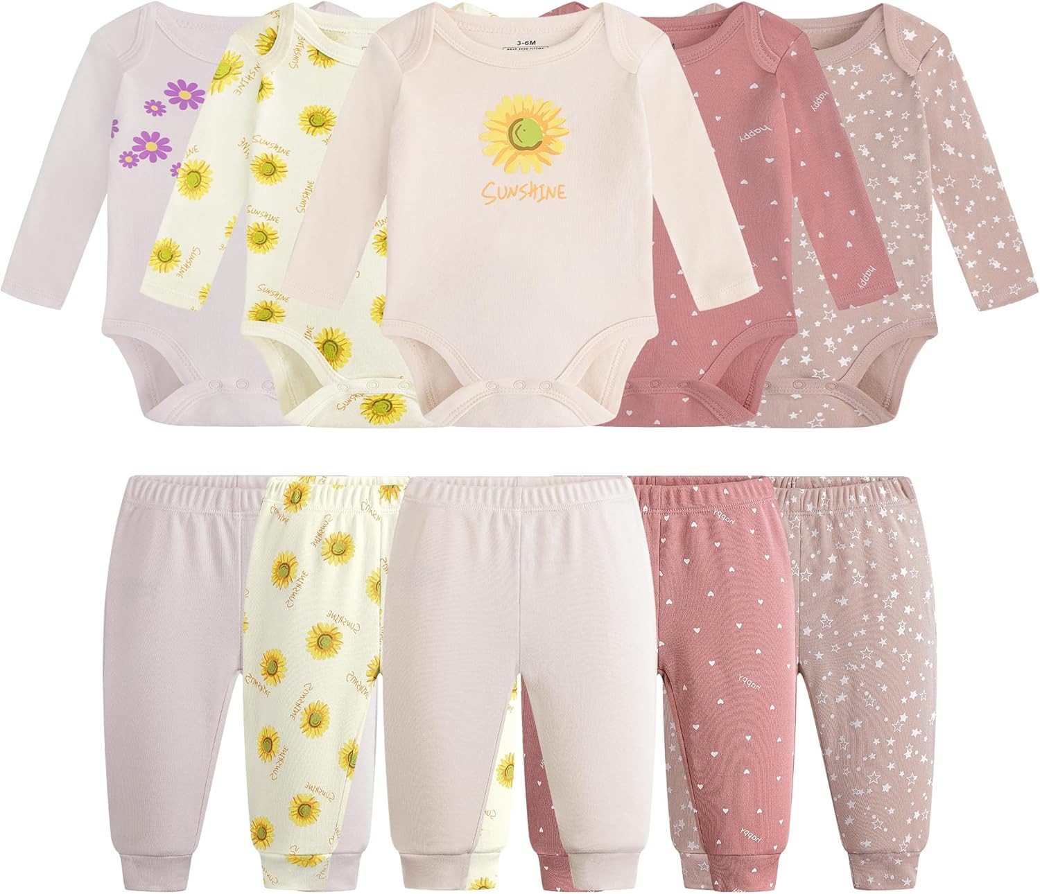 Baby Newborn Layette 10-Piece Clothing Sets Soft Cotton Bodysuits Pants Sets for
