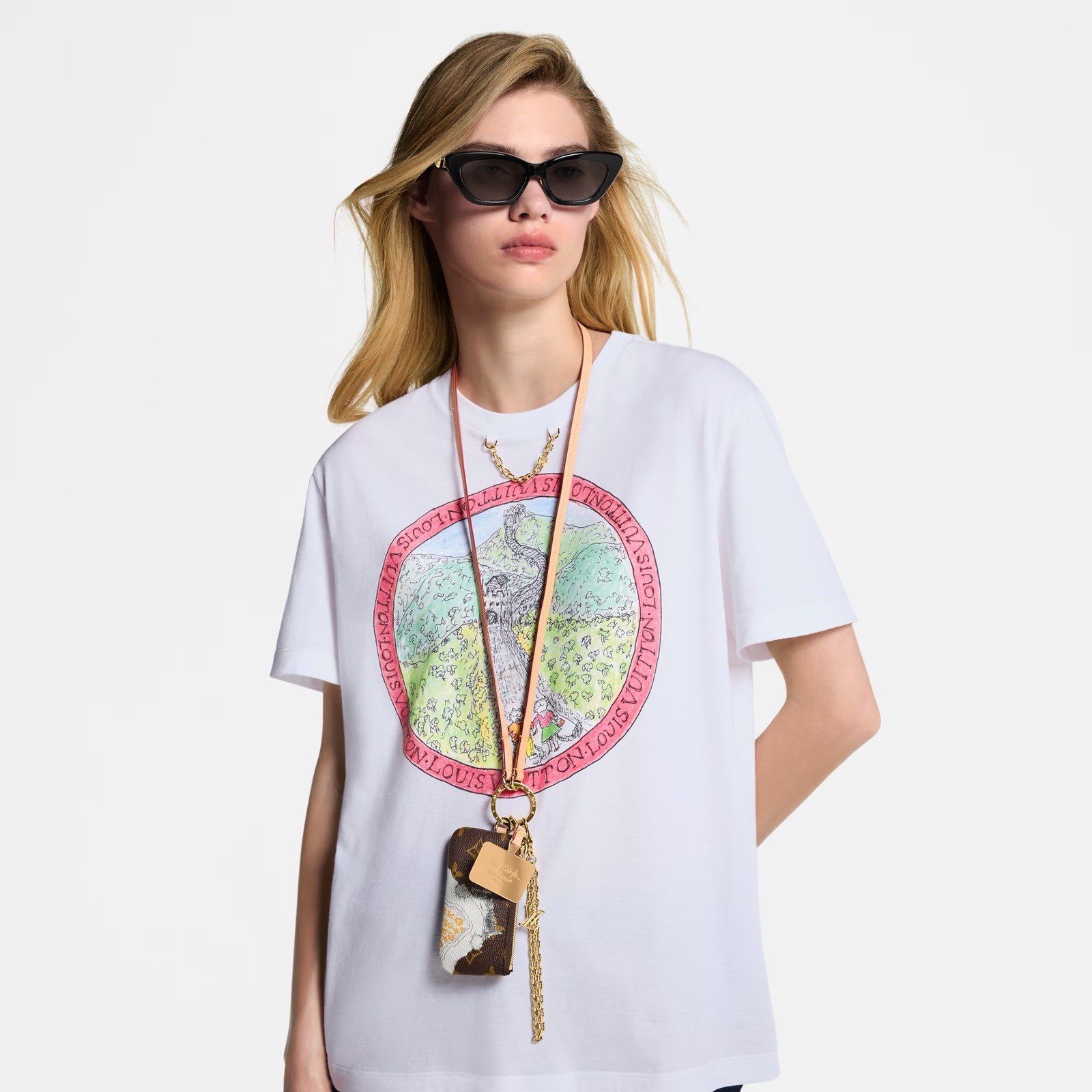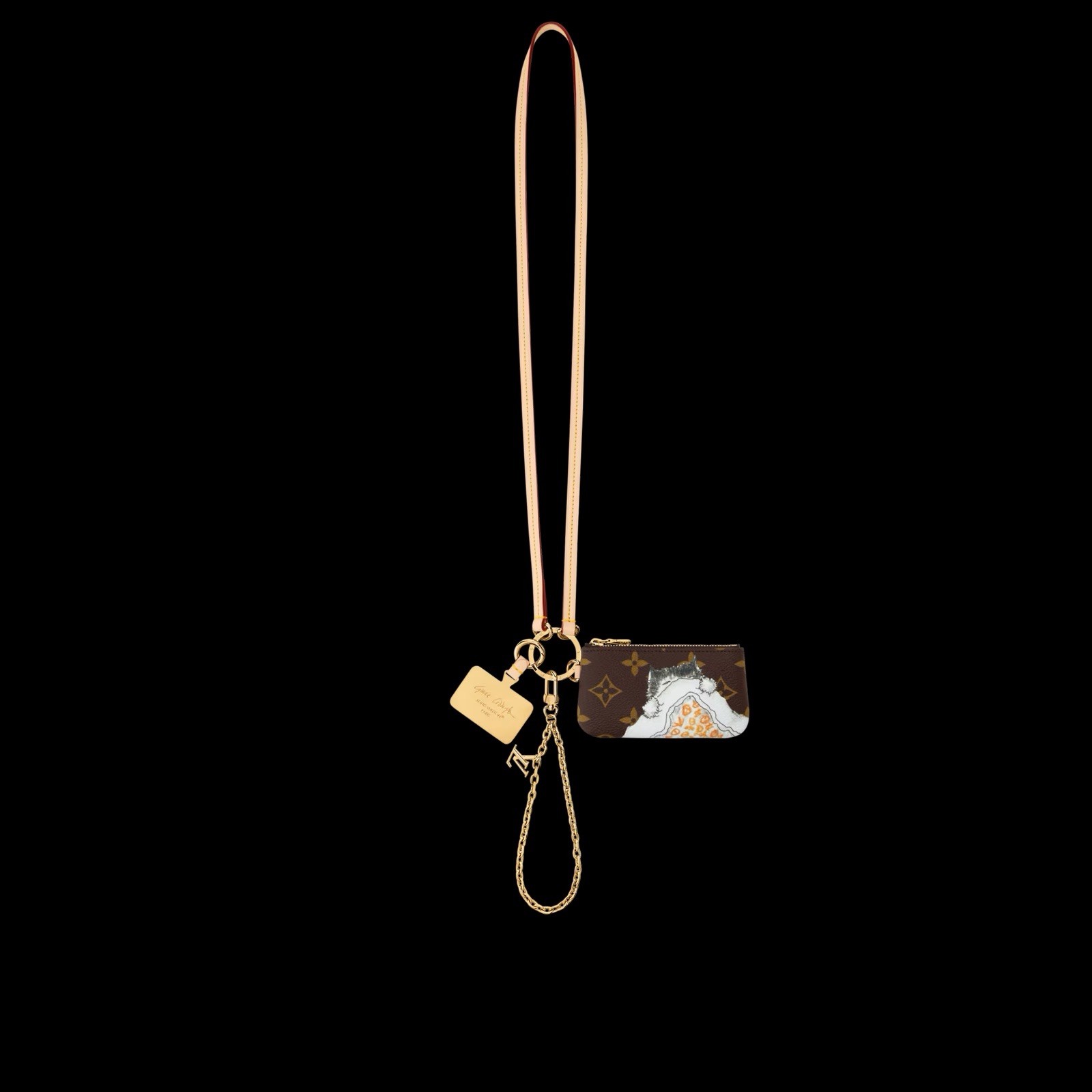 Celebrating her love of cats, legendary fashion icon Grace Coddington has hand-drawn the playful illustration on this phone holder. Part of an exclusive collaboration with the former American Vogue Creative Director at Large, the chic design features a removable gold-toned chain and strap, offering multiple carry options. It also comes with a Monogram zipped pouch to store keys or small essentials.