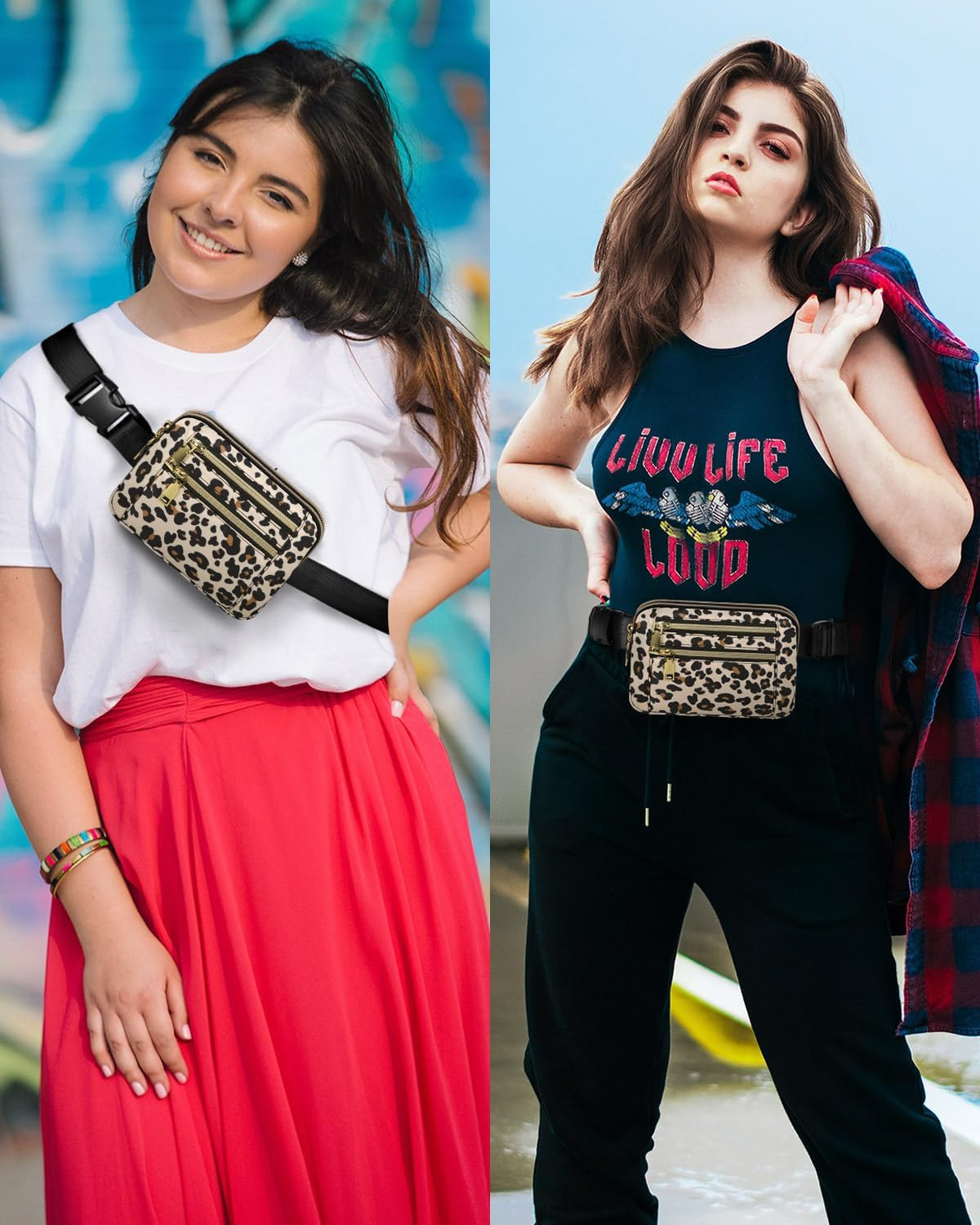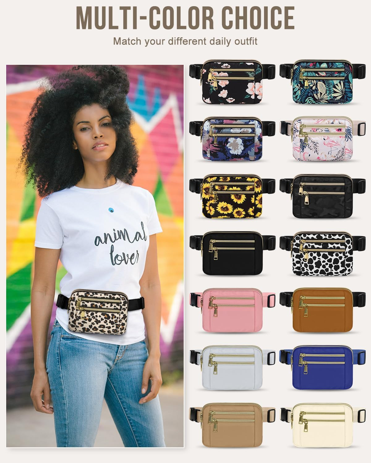 Fanny Packs for Women Fashion Waist Packs Bag with Adjustable Strap and 4 Zipper Pockets Waterproof Everywhere Crossbody Belt Bag for Workout Running Travelling(Leopard)