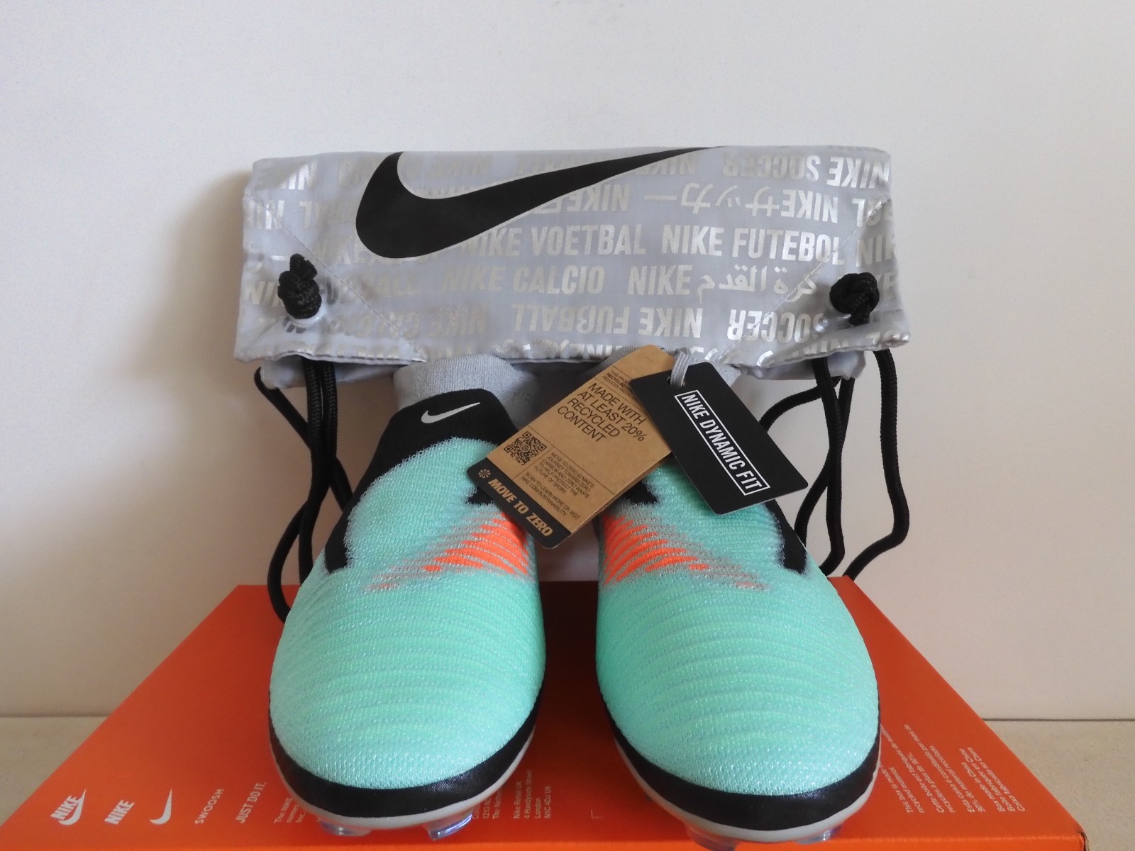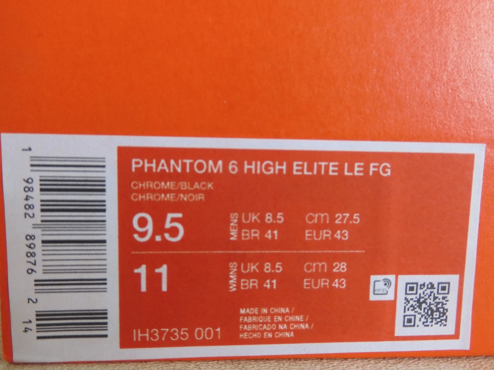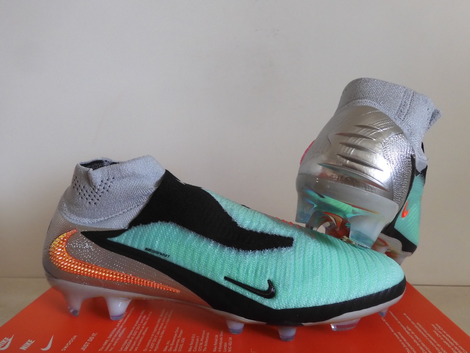 This is a pair of 100% AUTHENTIC BRAND NEW. NIKE PHANTOM 6 HIGH ELITE LE FG SOCCER CLEATS. They have a cool Chrome-Black color combination. These stylish soccer cleats offers great ball control and accuracy. Lightweight with a synthetic leather upper for comfort. Three shot shield options for better ball control and accuracy.