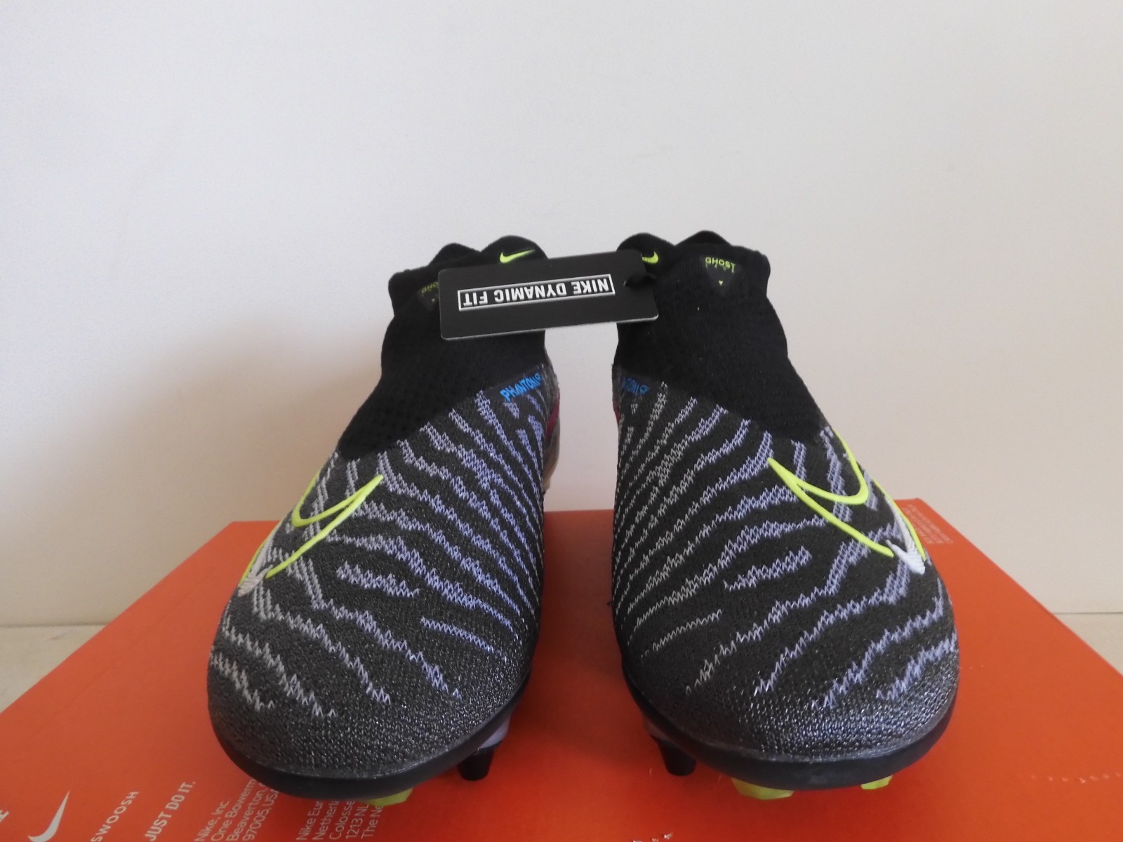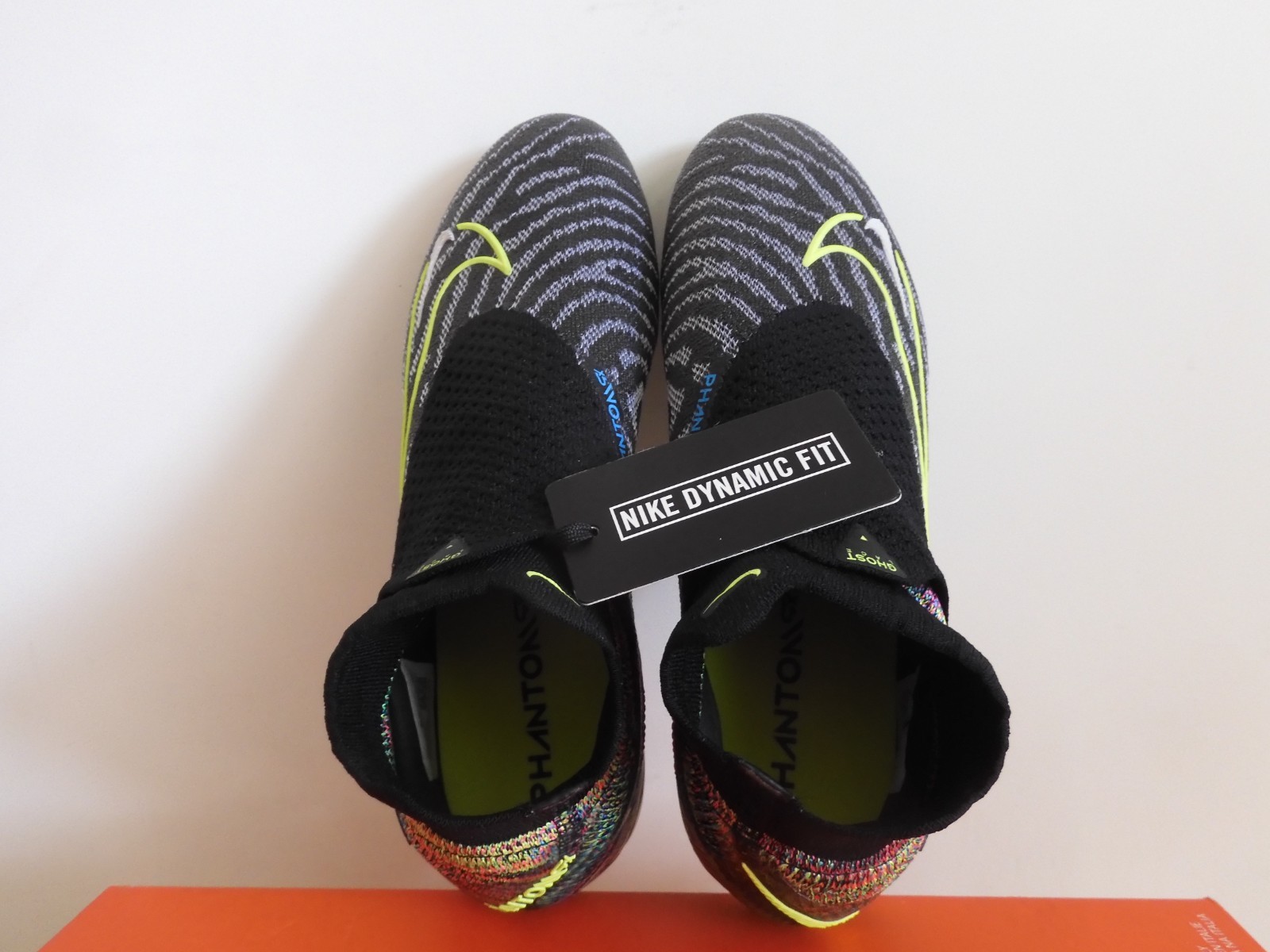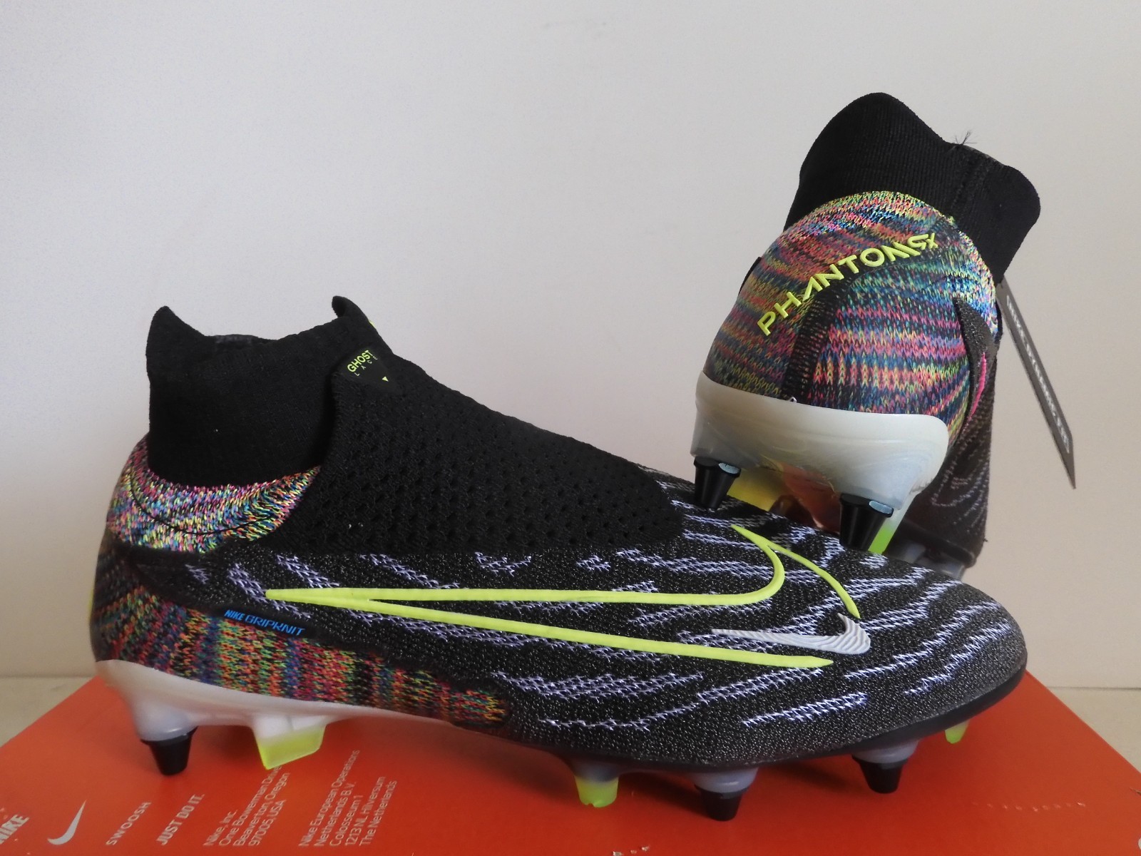 This is a pair of 100% AUTHENTIC BRAND NEW. NIKE PHANTOM GX II 2 ELITE DF FUSION SG PRO P LINK PACK MULTI COLOR SOCCER CLEATS. They have a cool Black-Volt-White-Blow Glow color combination.These stylish soccer cleats offers great ball control and accuracy. Lightweight with a synthetic leather upper for comfort. Three shot shield options for better ball control and accuracy.