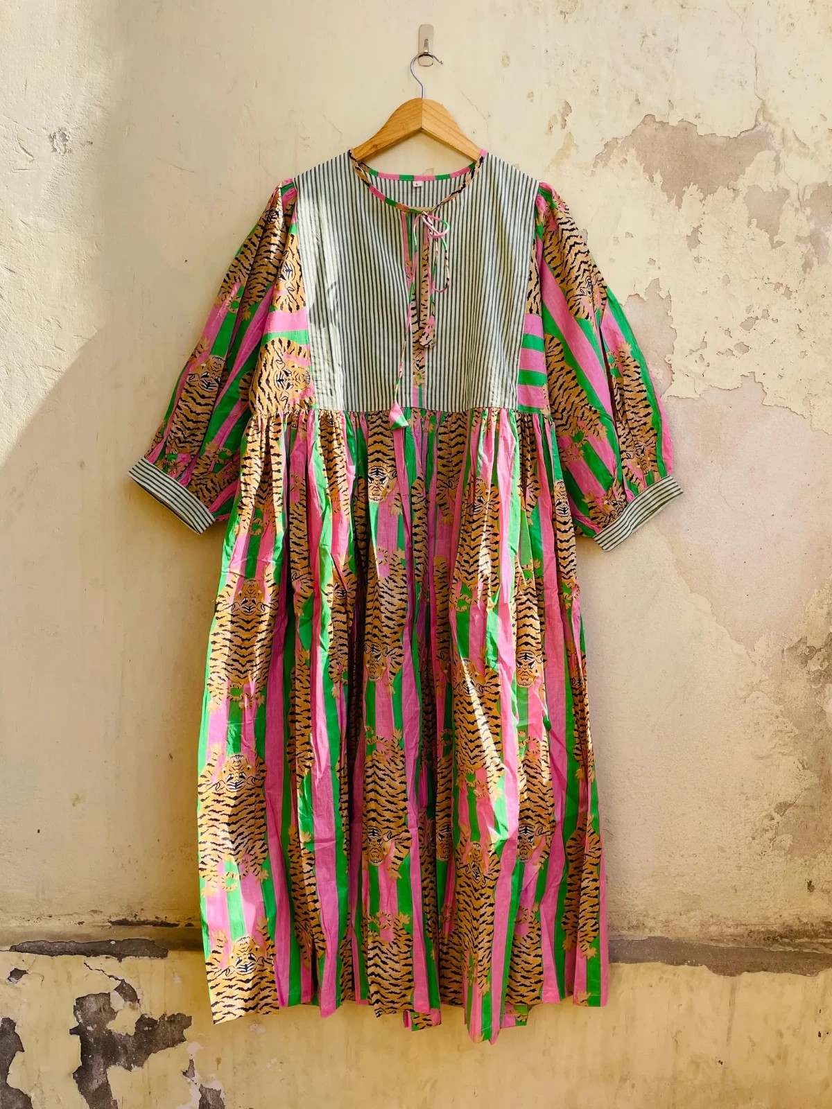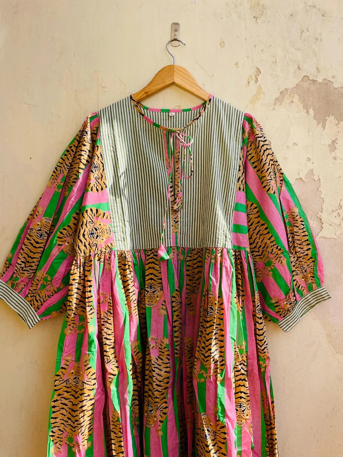 Tiger Print Midi Dress, Mini Dress, Long Block Print Dress, Deep Neck